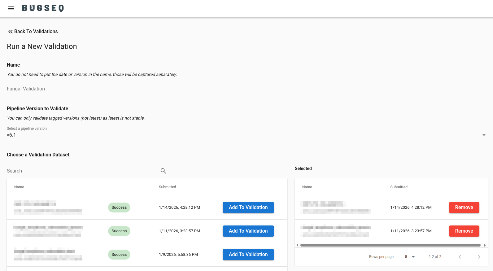 Clicking “Start Validation” will re-run those analyses on the validation version. Note that validations may take longer as inputs will need to be retrieved.